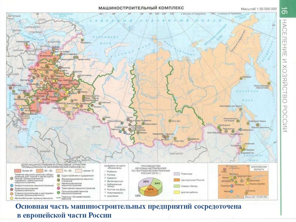 Основная часть машиностроительных предприятий сосредоточенав европейской части России