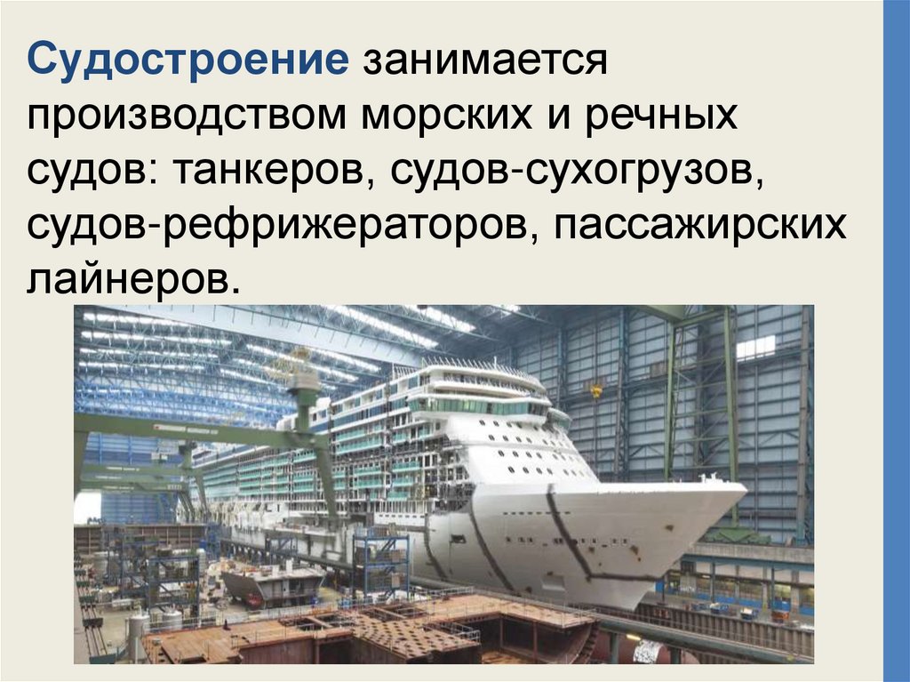 Судостроение занимаетсяпроизводством морских и речных