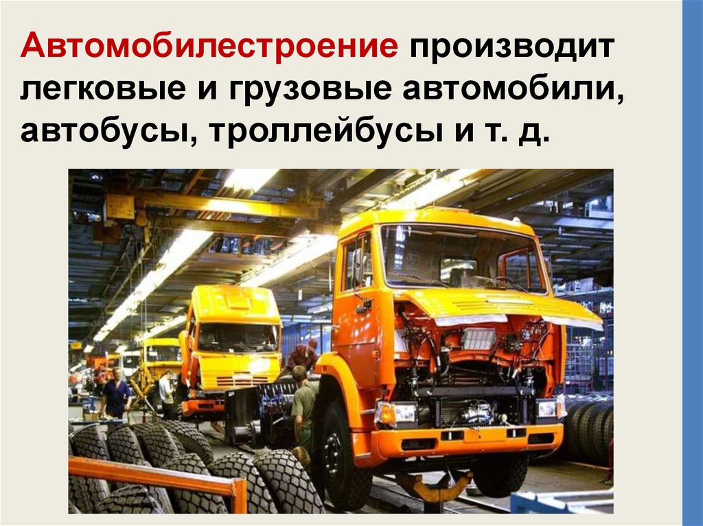 Автомобилестроение производитлегковые и грузовые автомобили,