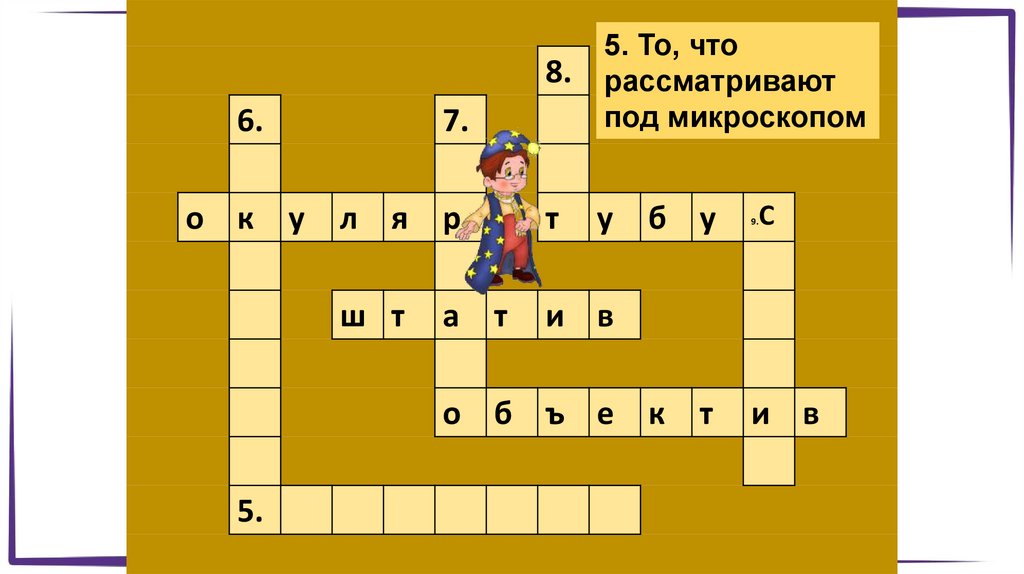5. Положите объект изучения на предметное стекло, затем на предметный столик, под специальные