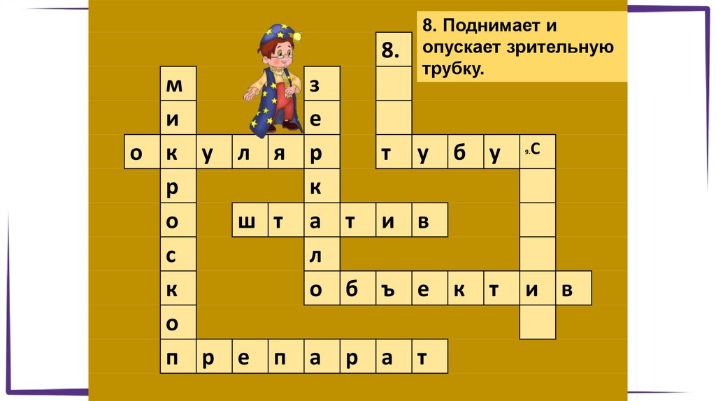 9. Закончив работу с микроскопом, выключите свет, поставьте микроскоп в сторону
