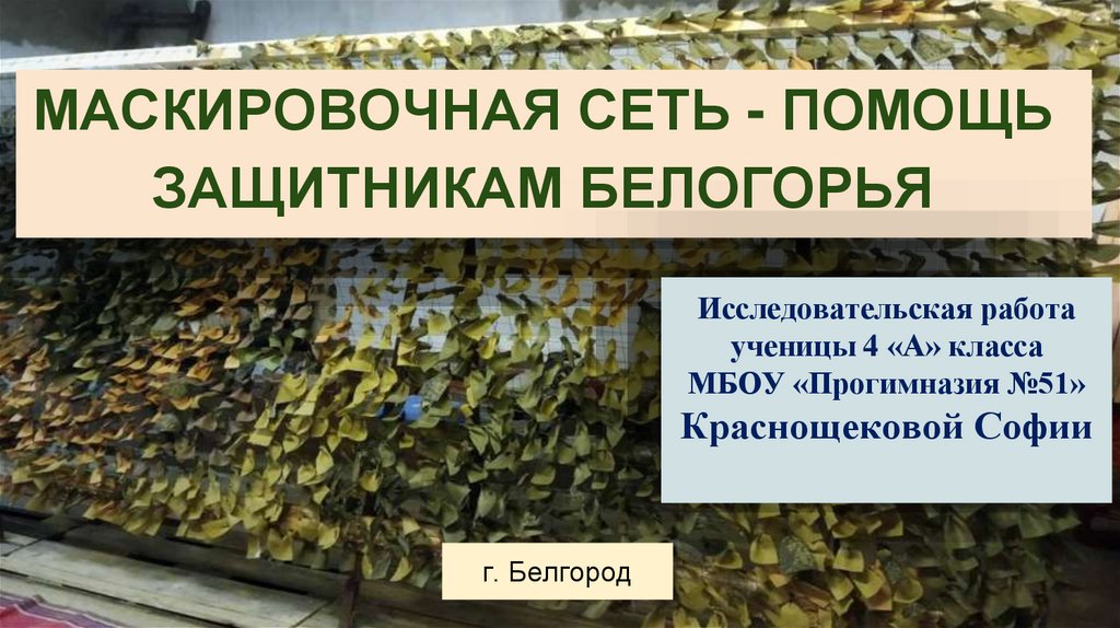 МАСКИРОВОЧНАЯ СЕТЬ - ПОМОЩЬЗАЩИТНИКАМ БЕЛОГОРЬЯ
