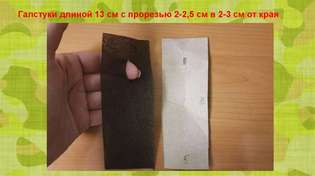 Галстуки длиной 13 см с прорезью 2-2,5 см в 2-3 см от края13.