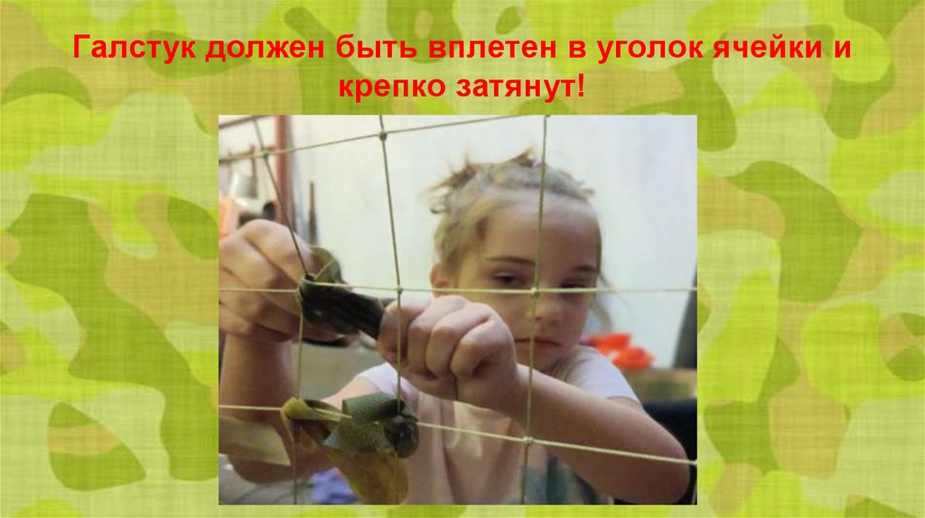 Галстук должен быть вплетен в уголок ячейки икрепко затянут!