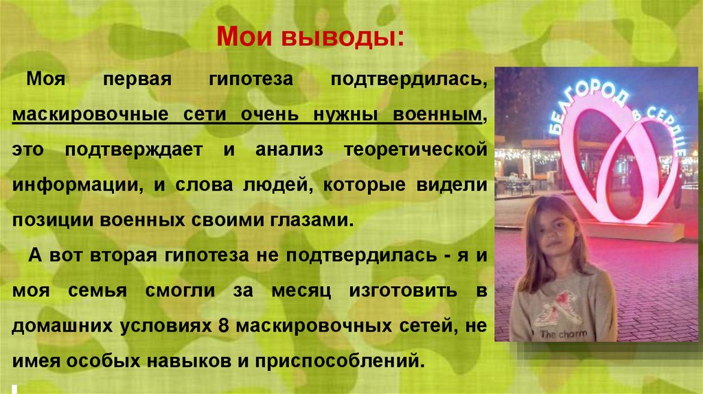Мои гипотезы: 1) Маскировочные сети очень нужны военным.