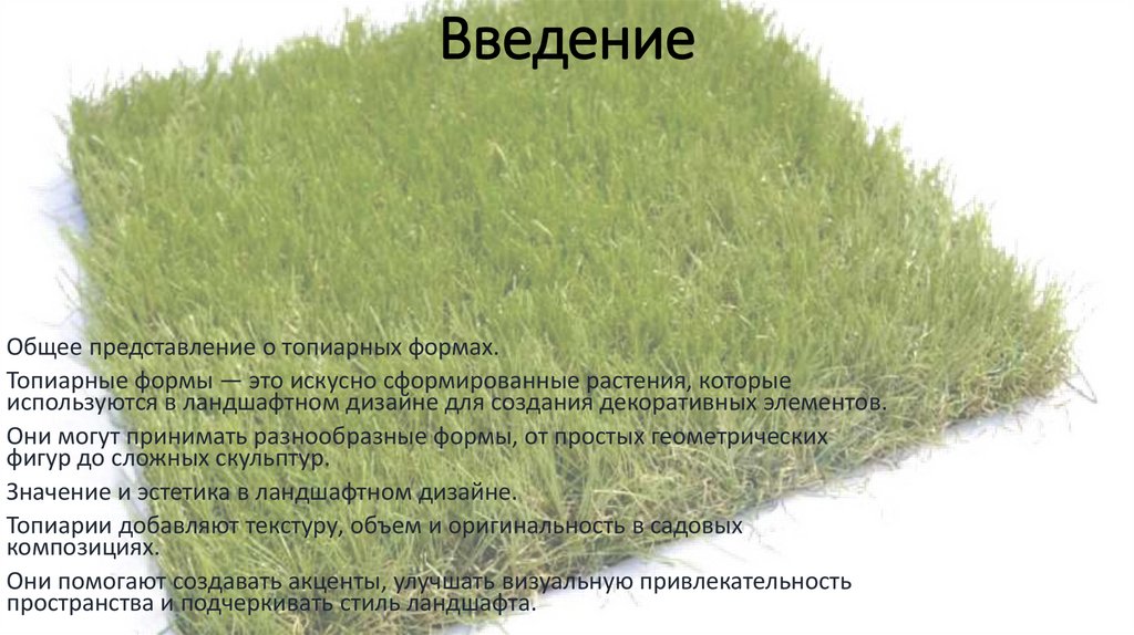 Общее представление о топиарных формах.Топиарные формы — это искусно сформированные растения, которые
