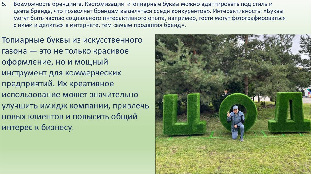 5.Возможность брендинга. Кастомизация: «Топиарные буквы можно адаптировать под стиль и