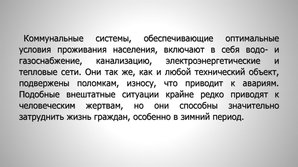 Коммунальные системы, обеспечивающие оптимальныеусловия проживания населения, включают в себя водо- и