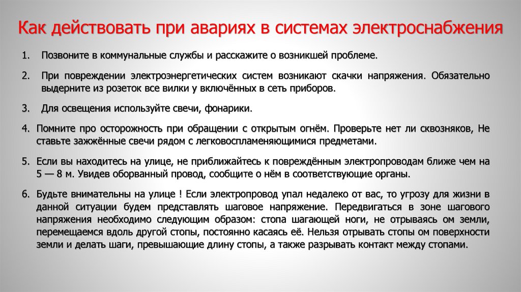 1. Безопасные действия при авариях на коммунальных системах жизнеобеспечения