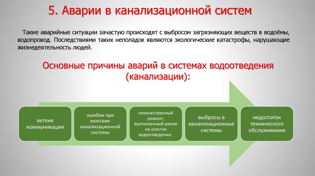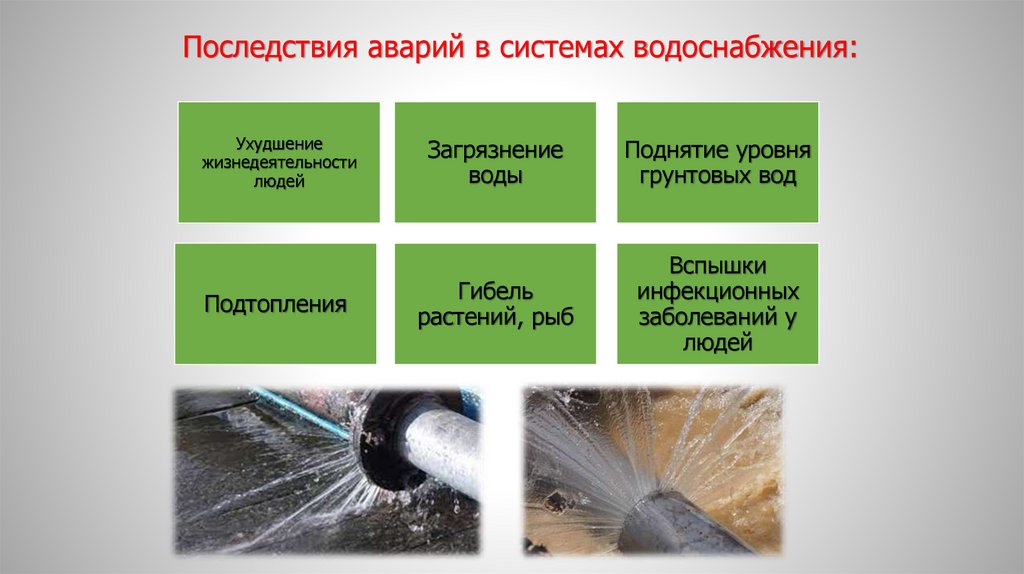 водопровод. Последствиями таких неполадок являются экологические катастрофы, нарушающие