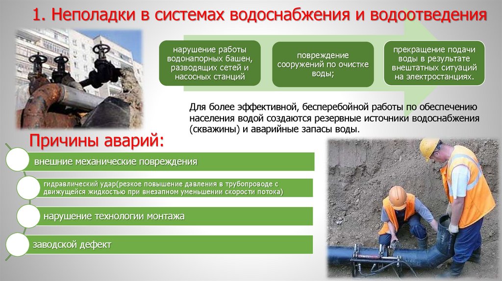 1. Неполадки в системах водоснабжения и водоотведениянарушение работы
