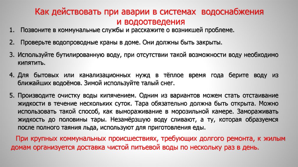 Безопасные действия при аварияхна коммунальных системах