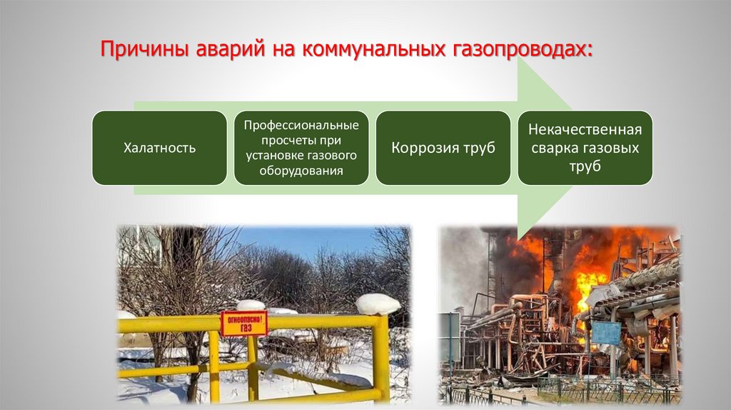 Причины аварий на коммунальных газопроводах:Халатность