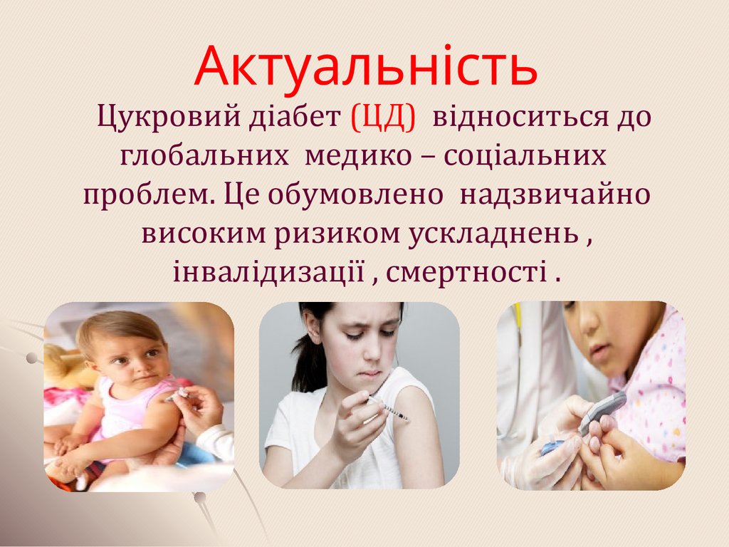 АктуальністьЦукровий діабет (ЦД) відноситься до