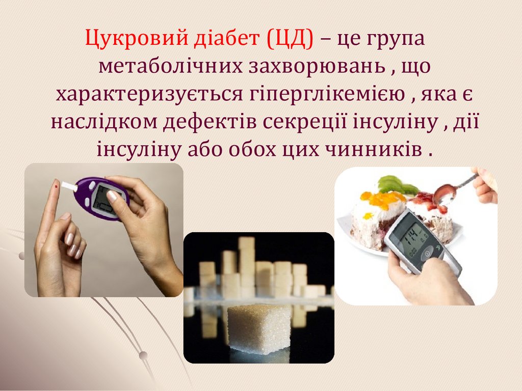 Цукровий діабет (ЦД) – це групаметаболічних захворювань , що