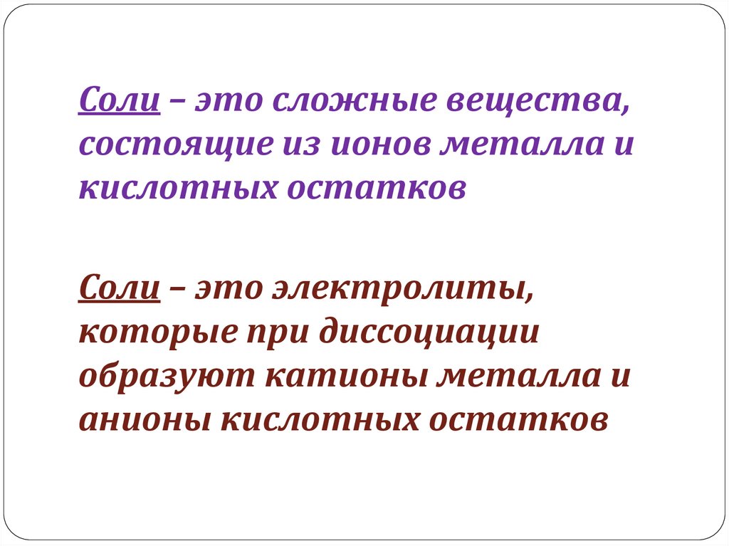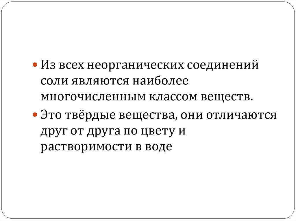 6. Некоторые свойства кислых солейа) как правило, растворимы в отличие от средних