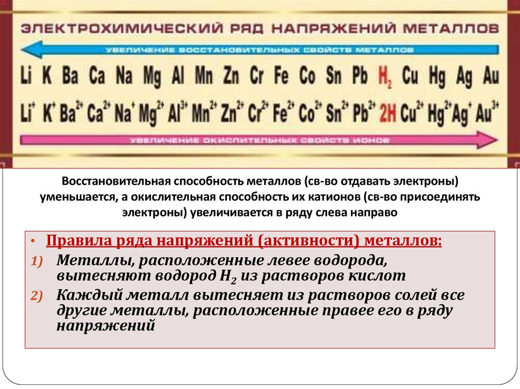 Восстановительная способность металлов (св-во отдавать электроны)уменьшается, а окислительная способность их катионов (св-во присоединять