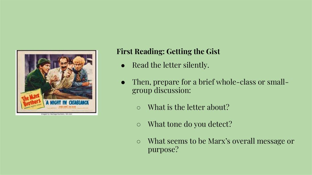 First Reading: Getting the Gist● Read the letter silently.