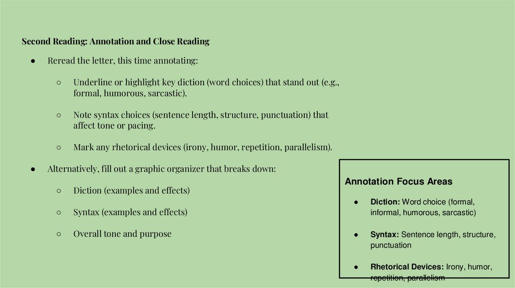 Second Reading: Annotation and Close ReadingReread the letter, this time annotating: