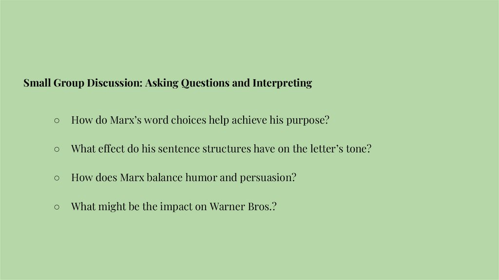 upcoming film. Let’s see how Marx uses language to make