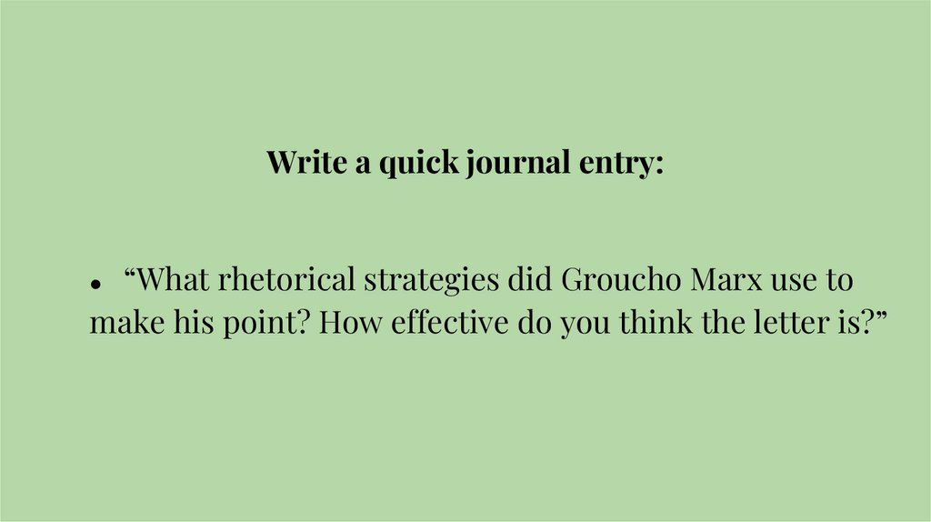 Write a quick journal entry:“What rhetorical strategies did Groucho Marx use to