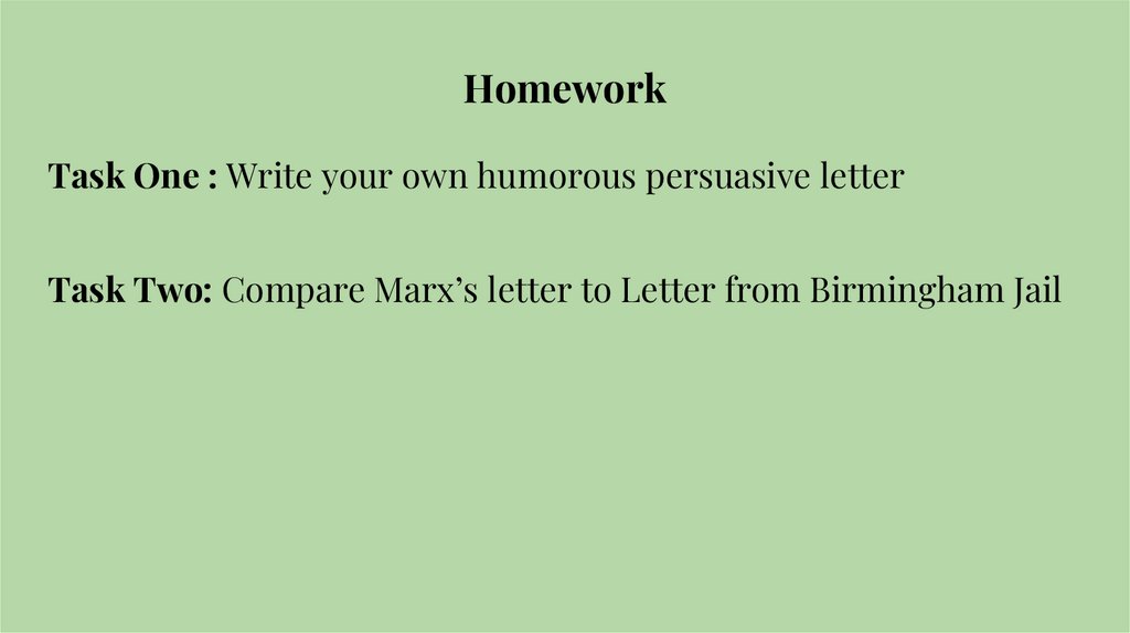 Task Two: Compare Marx’s letter to Letter from Birmingham Jail