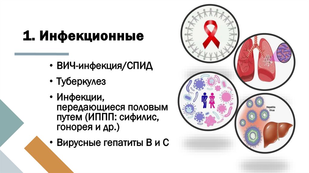 1. Инфекционные• ВИЧ-инфекция/СПИД