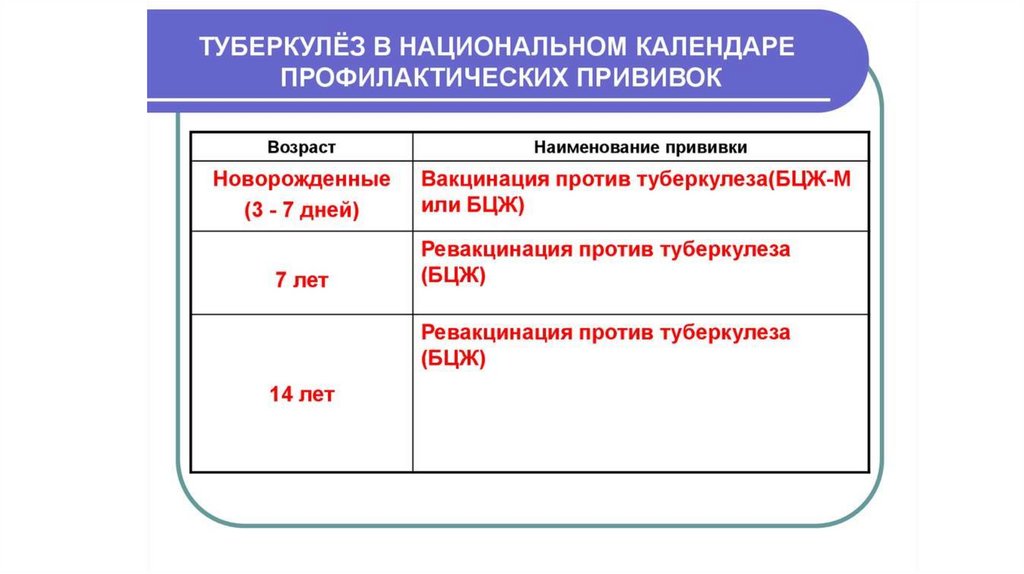 Вакцинация против туберкулёзапроводится с помощью вакцины