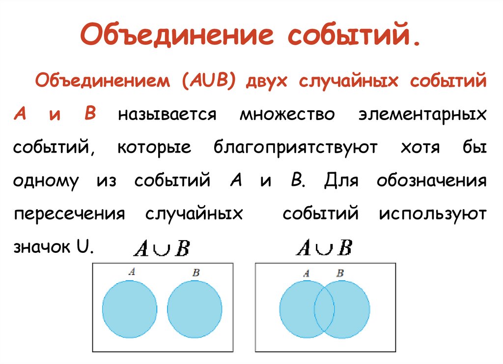 Объединение событий.Объединением (АUВ) двух случайных событий