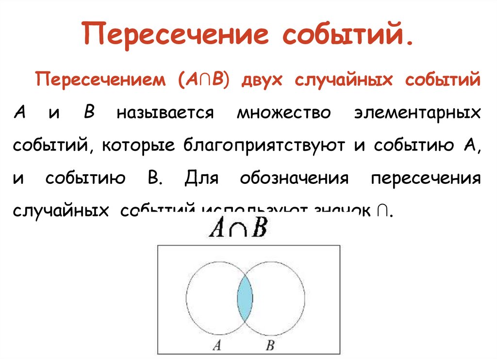 Пересечение событий.Пересечением (А∩В) двух случайных событий