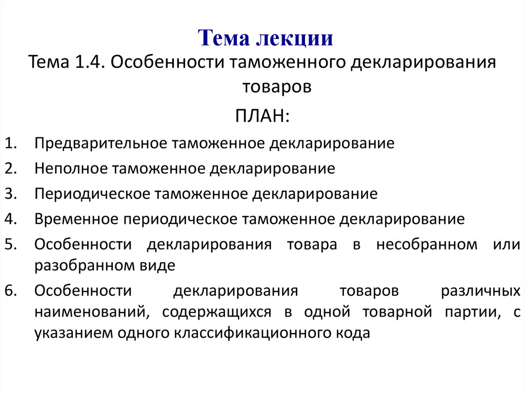 Тема 1.4. Особенности таможенного декларированиятоваров