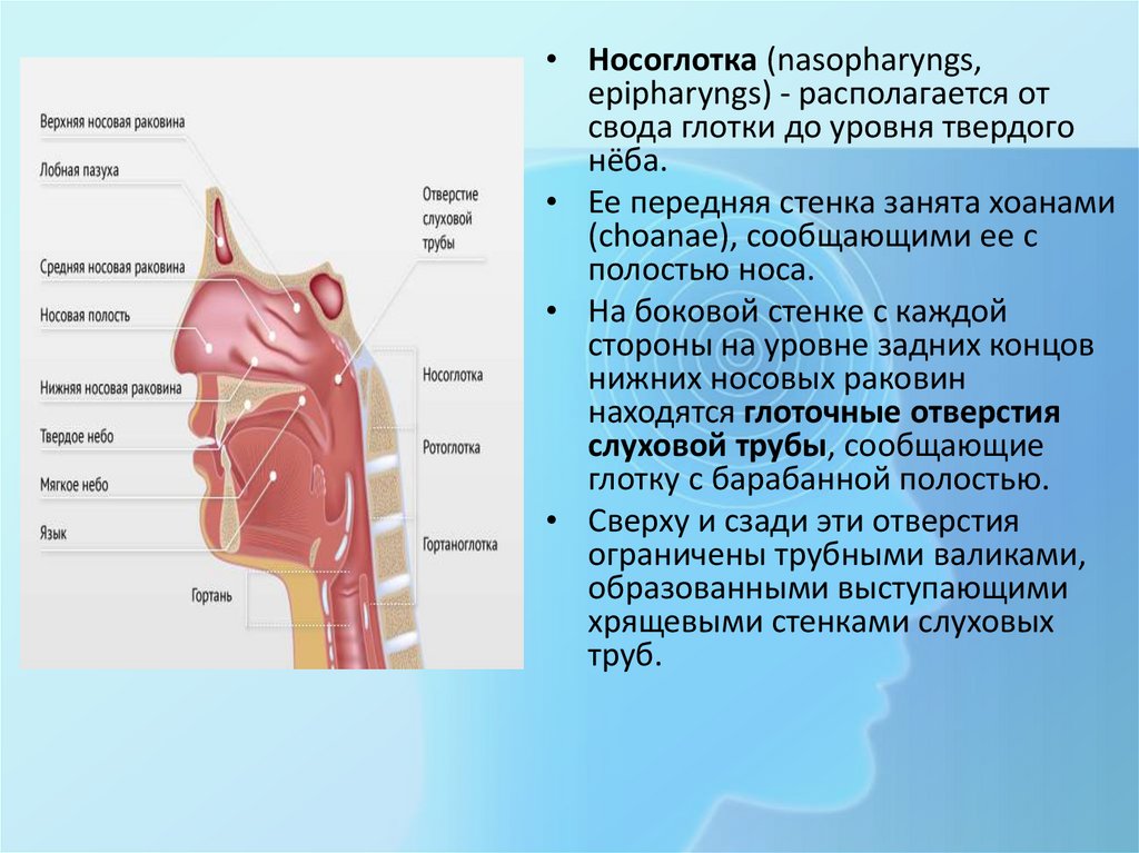 • Носоглотка (nasopharyngs,epipharyngs) - располагается от