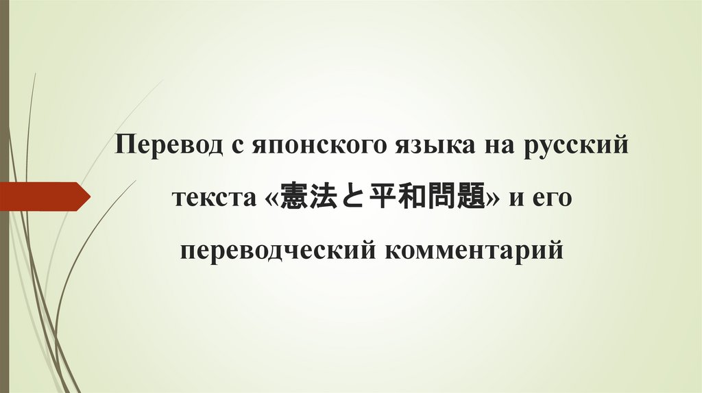 1. Перевод с японского языка на русский текста «憲法と平和問題» и его переводческий комментарий