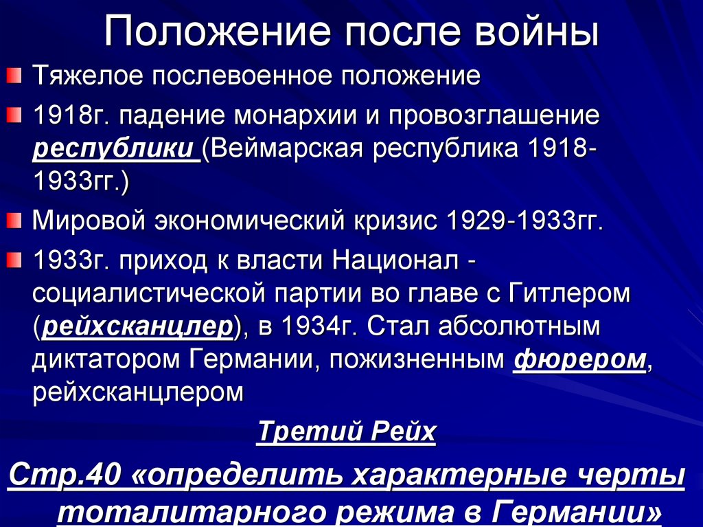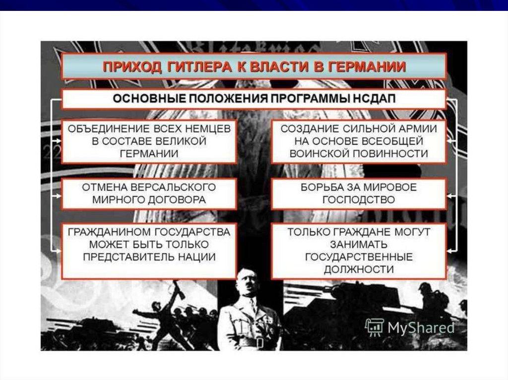 1933г. приход к власти Национал социалистической партии во главе с Гитлером