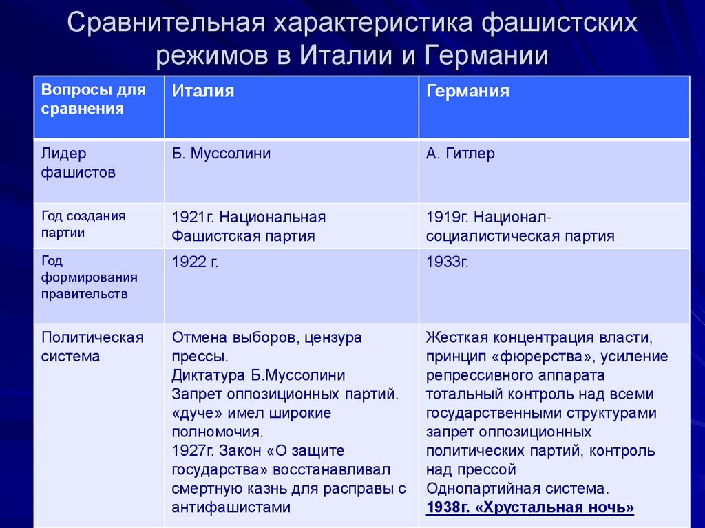 Сравнительная характеристика фашистскихрежимов в Италии и Германии