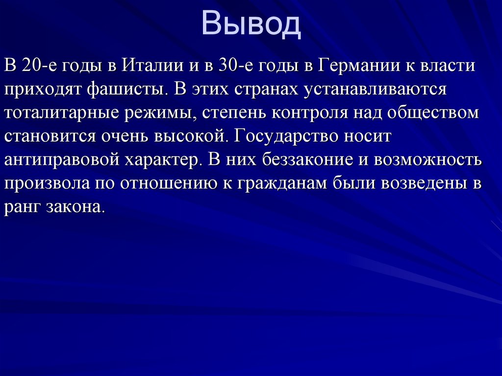 ВыводВ 20-е годы в Италии и в 30-е годы в Германии к власти