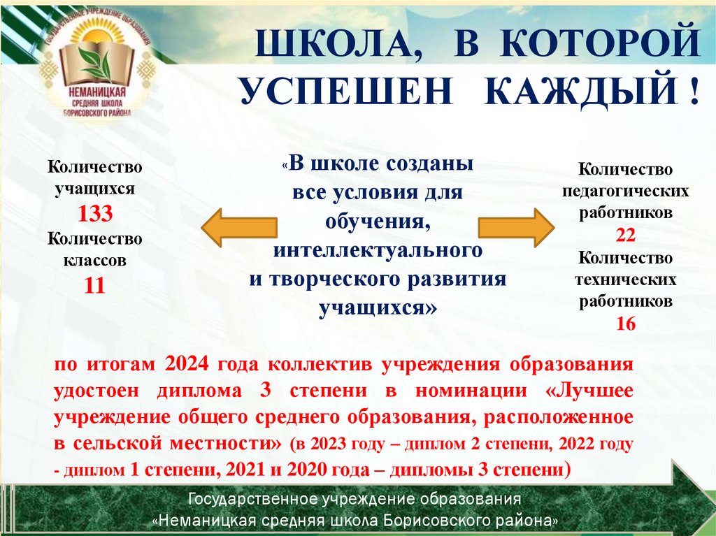 по итогам 2024 года коллектив учреждения образования