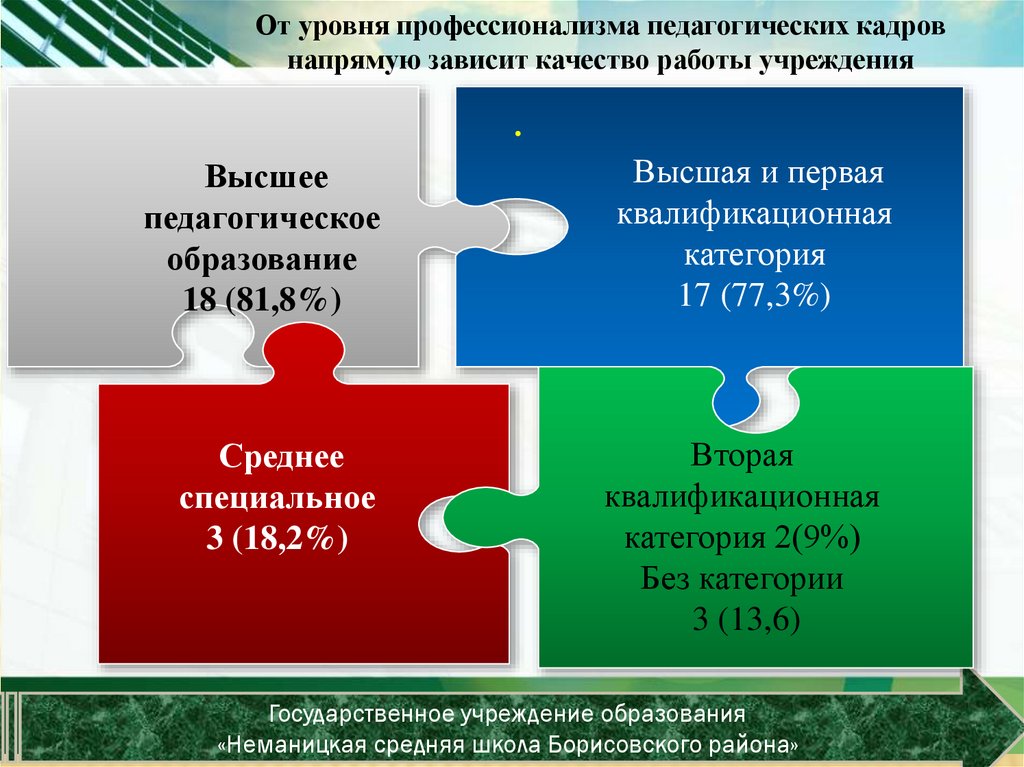 От уровня профессионализма педагогических кадровнапрямую зависит качество работы учреждения