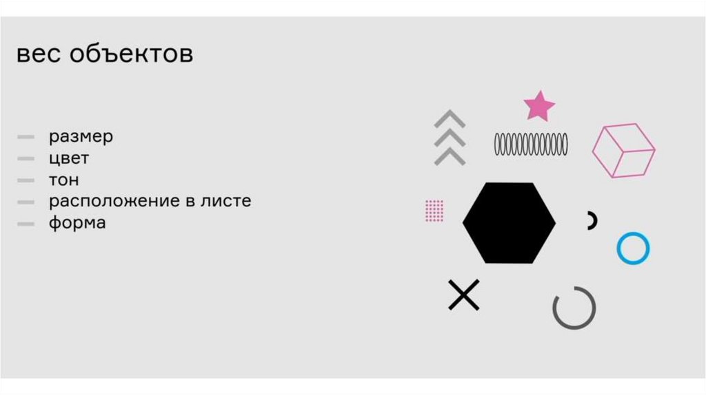 Используйте разные характеристики объекта: размер, цвет, тон,