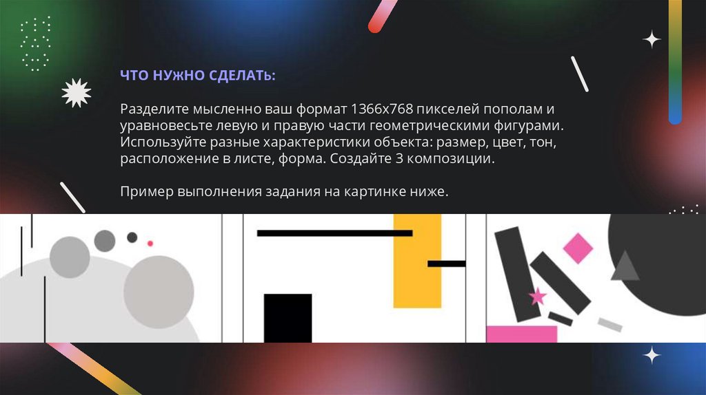 Равновесие. Формат плоской композиции.Элементы композиции: точка, линия, пятно