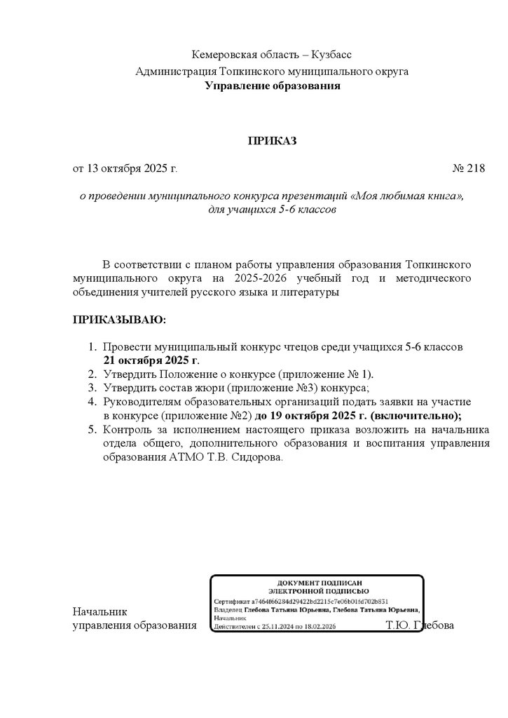 к приказу от 13.10.2025г. №218