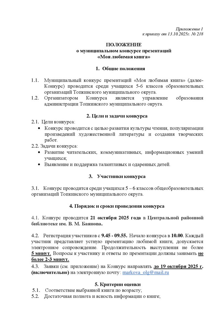 Приложение 1к приказу от 13.10.2025г. № 218