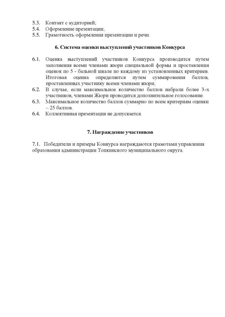 6. Система оценки выступлений участников Конкурса