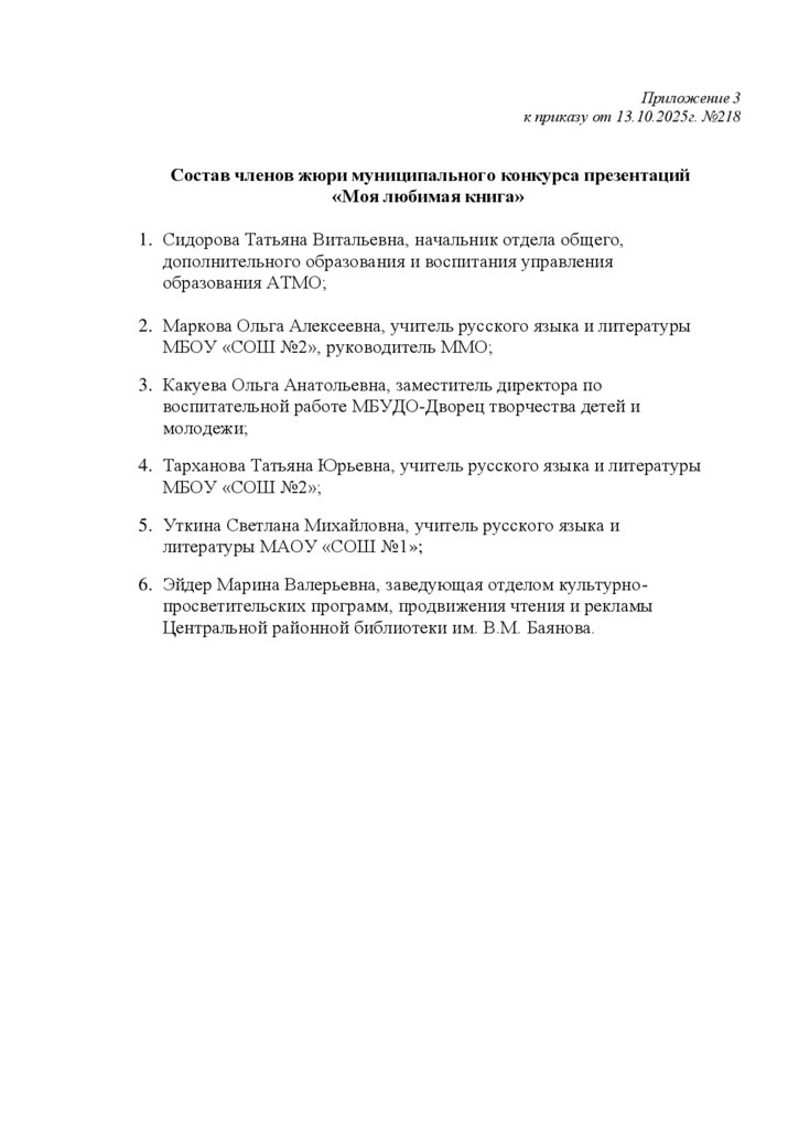 Приложение 3к приказу от 13.10.2025г. №218