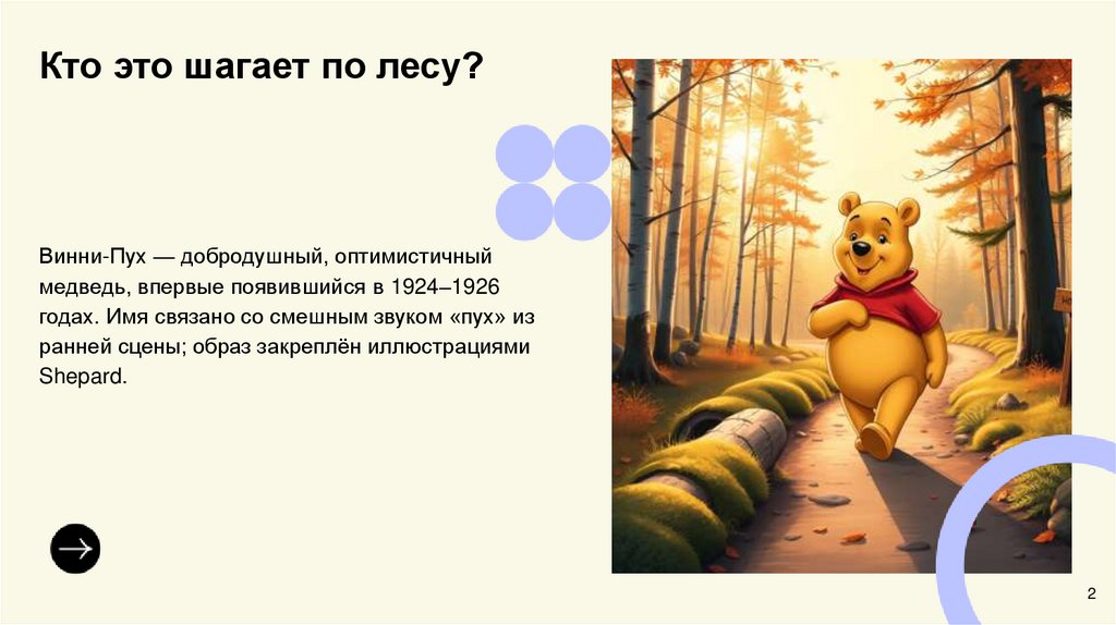 Кто это шагает по лесу?Винни-Пух — добродушный, оптимистичный