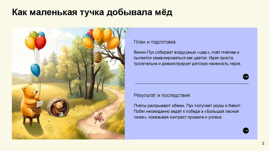 Винни-Пух собирает воздушный «шар», поёт пчёлам и