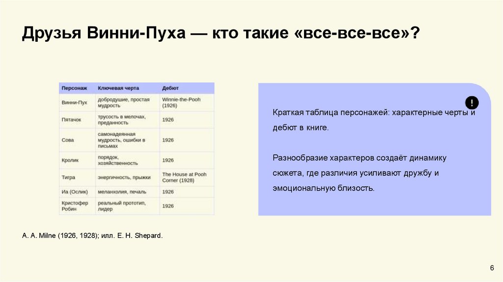 Друзья Винни-Пуха — кто такие «все-все-все»?Краткая таблица персонажей: характерные черты и