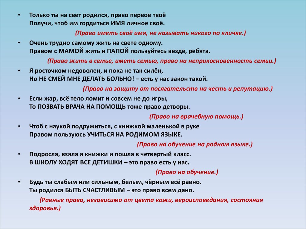 Правом с МАМОЙ жить и ПАПОЙ пользуйтесь везде, ребята.