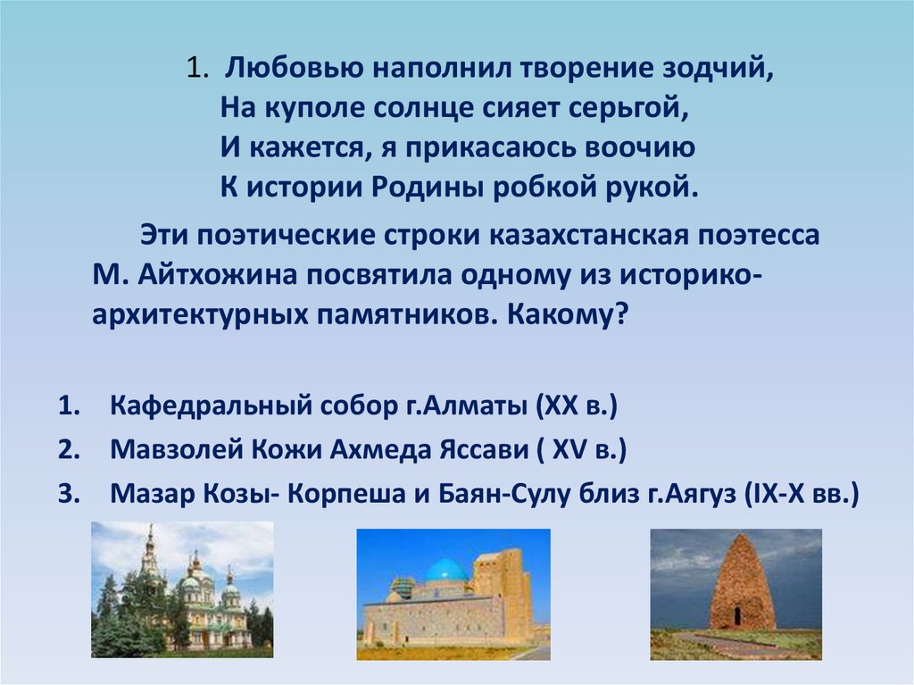 М. Айтхожина посвятила одному из историкоархитектурных памятников. Какому?