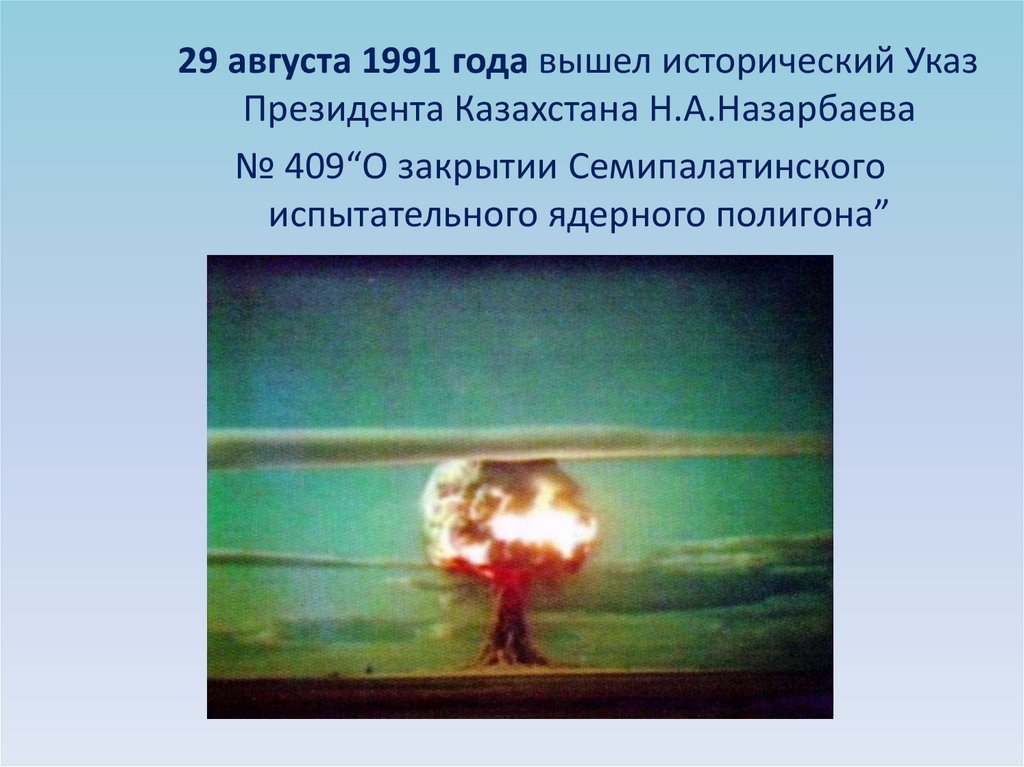 29 августа 1991 года вышел исторический УказПрезидента Казахстана Н.А.Назарбаева
